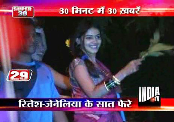 Mumbai, Feb 3: In true band baaja baarat style, Bollywood couple Riteish Deshmukh and Genelia D'Souza tied the knot today according to Marathi traditions in the presence of Bollywood and political biggies.