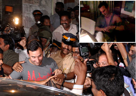 Mumbai, Feb 23: India TV today telecast a picture of Bollywood actor Saif Ali Khan in a torn shirt sitting inside the Taj Wasabi restaurant soon after the scuffle with Iqbal Sharma.