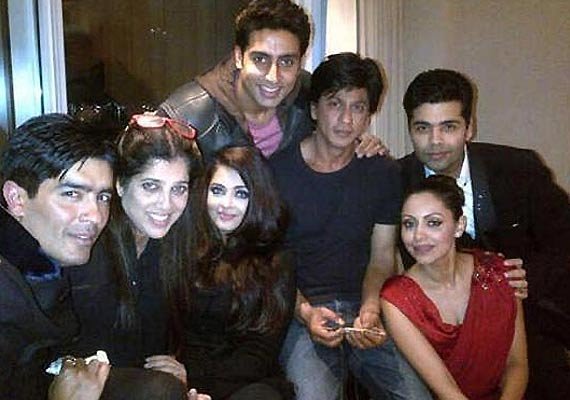 Gauri Khan organized a birthday bash for hubby Shah Rukh on his birthday night. Along with 100 odd guests, Bachchans were also invited for the party. Aishwarya whose birthday falls a day before Shah Rukh's turned up with her better half Abhishek at Mannat where a surprise was waiting for her.