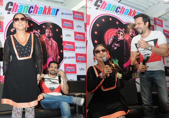 Bengaluru, June 25: The lead stars of ‘Ghanchakkar'- Vidhya Balan and Emraan Hashmi came up together during the promotion of their flick at Reliance Digital on Brigade road here on Monday.