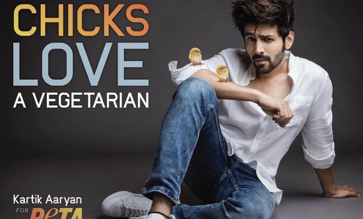Bollywood actor Kartik Aaryan who shot to fame with Sonu Ke Titu Ki Sweety success, has become the new face of PETA India’s go vegetarian campaign. It’s a new tongue-in-cheek campaign by the animal rights organisation saying, ‘Chicks love a vegetarian’. The actor enjoys a huge female fan following after his chocolate boy avatars in 4 Luv Ranjan films including Pyaar Ka Punchnama franchise. He shared the poster on his social media, saying that’s he proud to be the face of PETA India.