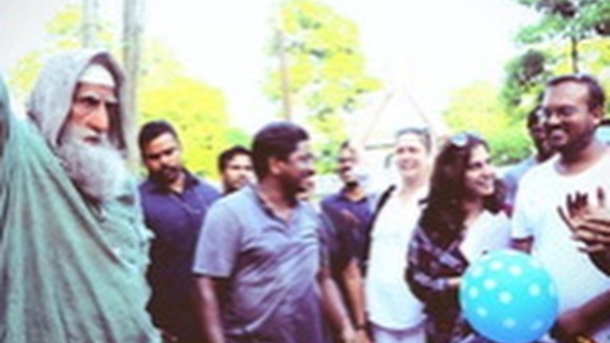 Amitabh Bachchan is sporting a grumpy old man's look. In the first look, the 76-year-old thespian is seen sporting a long beard, spectacles, a head scarf and a prosthetic nose, which made Big B almost unrecognisable.