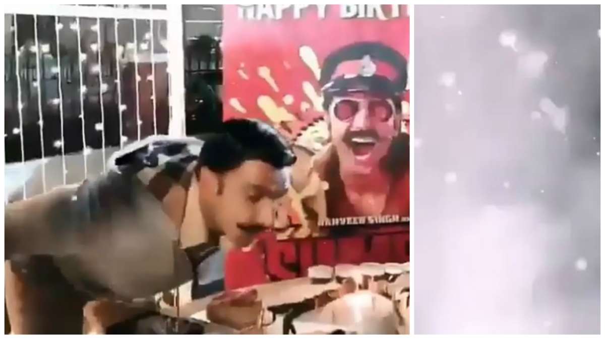 Ranveer had a midnight celebration of the sets of Simmba. Inspector Sangram Bhalerao was overwhelmed with the surprise birthday party thrown by director Rohit Shetty. There were three giant cakes, jars of Nutella and firecrackers. We know Ranveer loved the surprise because it had his favourite Nutella cake.