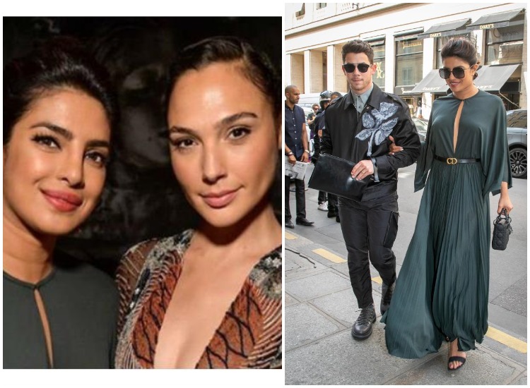 At the PFW, the 36-year-old actress was seen bonding with Israeli actress Gal Gadot. A photo of the divas from the fashion week is being shared by several fan pages online. In the snap, Priyanka is seen donning Dior's green pleated scalloped sleeve silk gown with a black and gold belt. She has pulled her hair back in a low bun and has kept her make-up simple.