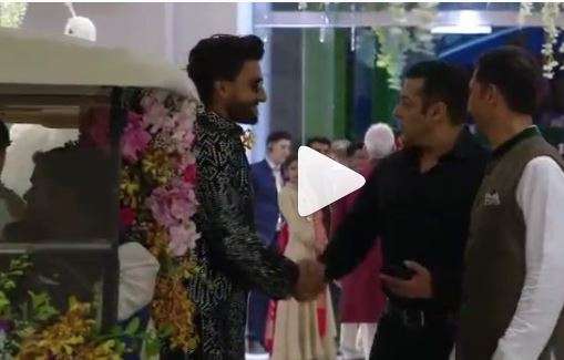 Here's a treat to all Salman fans as a video of him has surfaced on the internet. In the clip, he is seen greeting Ranveer Singh. Well, reportedly Salman did not arrive at the wedding from the front entrance, hence, there are photos of him from the wedding. Check out the video below.