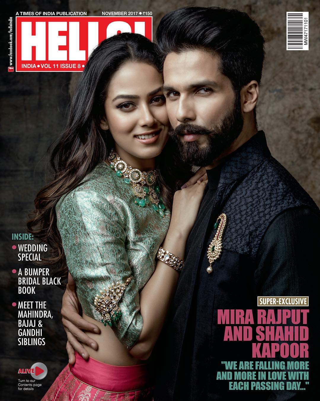 Bollywood actor Shahid Kapoor posed with his lovely wife Mira Rajput on Hello magazine cover for the very first time as a couple. And, needless to say we are all in total awe of their adorable chemistry. Shahid, who will be seen as Maharawal Ratan Singh in Sanjay Leela Bhansali’s film Padmavati, looks every inch royal as he poses with his queen Mira in the picture. The Instagram handle of Hellomagindia shared the lovely picture of Shahid and Mira, who are stealing hearts all the way.