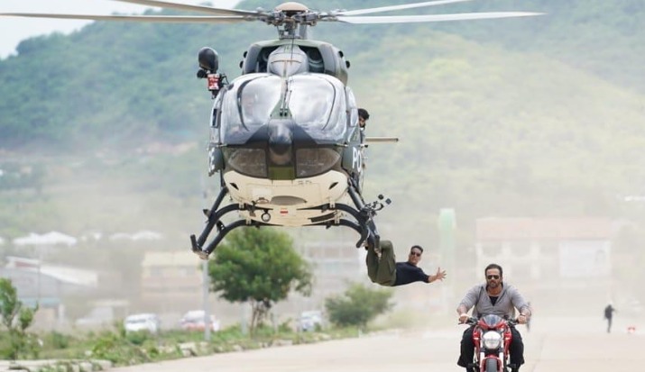 Bollywood's 'khiladi' Akshay Kumar on Monday gave fans a behind the scenes glimpse of the high-octane and "unadulterated" action to expect from Rohit Shetty's "Sooryavanshi". "From the day acting became my destiny, action has been my lifeline. Pure, unadulterated action in 'Sooryavanshi' will tell you'll why it still fires up my core," Akshay tweeted on Monday. This post was accompanied by a video in which Akshay features in car and bike chases as well as a death-defying stunt in which he is seen hanging from a helicopter, while Shetty directs him.