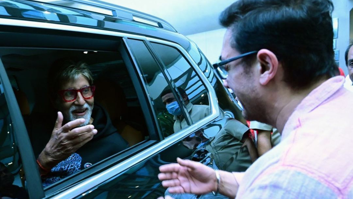 Aamir Khan and Amitabh Bachchan had an unexpected encounter and the moment is truly priceless for all Bollywood fans. Big B on Tuesday took to his verified social media accounts to share photos of his visit to Hyderabad. The megastar was there to inaugurate the new office building of Vyjayanthi Movies along with South superstars Prabhas, Dulquer Salmaan, Nani and popular filmmakers Prashanth Neel and Nag Ashwin. As he was leaving from the venue he heard a tap on his window.