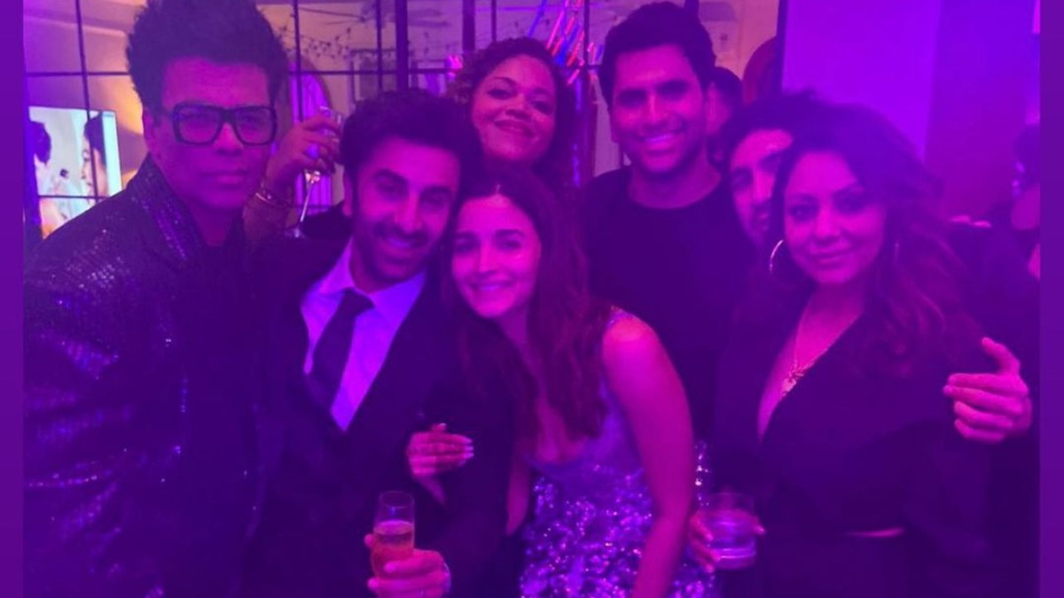Bollywood sweethearts Alia Bhatt and Ranbir Kapoor tied the knot on April 14. Last night the couple held a post-wedding bash at their residence and we saw many big names including Gauri Khan, Shah Rukh Khan, Malaika Arora, Arjun Kapoor, Tara Sutaria and Aadar Jain, Aditya Roy Kapur, Karan Johar, Karisma Kapoor, Shaheen Bhatt, Soni Razdan, Riddhima Kapoor and many more from the industry coming together to celebrate the newlyweds. Since then, the couple's friends and family members have been sharing pictures of the festivities on social media. On Sunday, Karan Johar took to his social media and dropped a picture, wherein we can see Alia and Ranbir posing romantically.