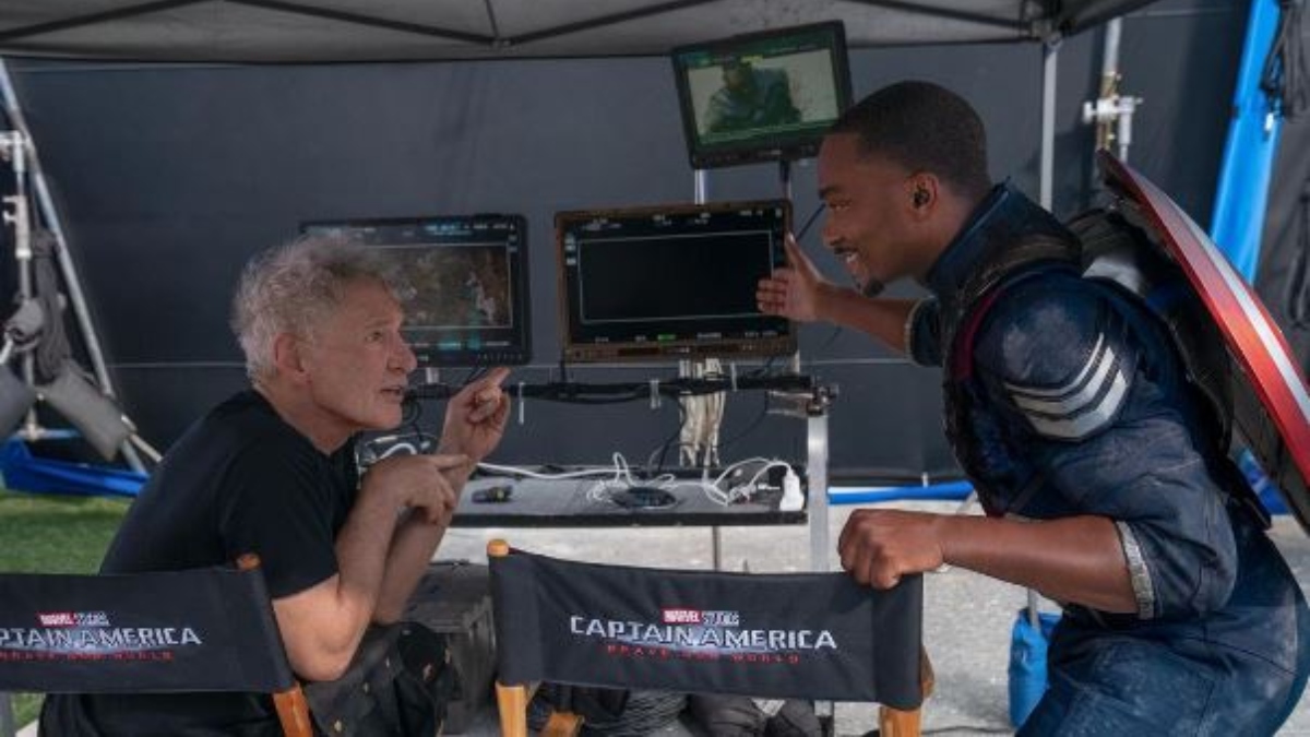 Anthony Mackie's BTS pic with Harrison Ford from the sets of Captain America has gone viral. Along with the photo, Anthony writes in the caption…. “When Harrison Ford tells you how kicking ass should look, you listen! LoL… Thanks for the on-set wisdom and laughs my friend! Can’t wait to do it again… Marvel Studios’ Captain America: Brave New World in theaters May 3, 2024”.