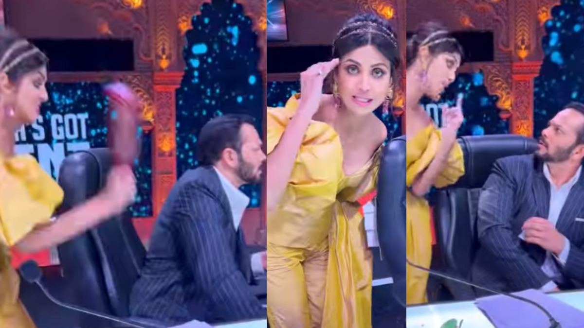 The upcoming episode of India's Got Talent Season 9 will see filmmaker Rohit Shetty as a guest judge. Shilpa Shetty, who appears alongside veteran actress Kirron Kher, rapper Badshah, and writer Manoj Muntashir as a judge, asks for the movie from Sooryavanshi director in 'his way'. Shilpa shared a hilarious Behind-the-scene video from the show's set in which she breaks a glass bottle on Rohit's arm. As the actress tries to get Rohit Shetty's attention, she is being ignored by the filmmaker who is talking to Badshah.