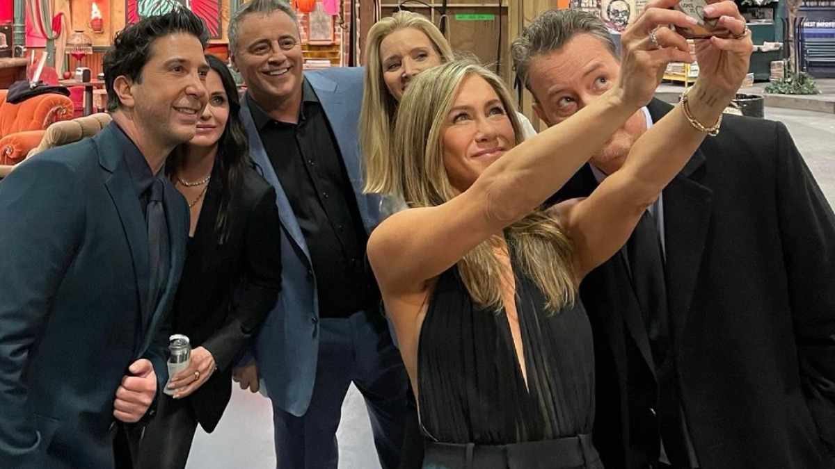 Just like us, Hollywood star Jennifer Aniston, too is not over with 'Friends: The Reunion.' She played the role of Rachel Green in the iconic sitcom 'Friends', summed up the recently-released reunion special episode on Wednesday by sharing priceless BTS pictures from the sets of the show. The OG6 cast members of the 'Friends' Aniston aka Rachel Green, Courteney Cox aka Monica Geller, Lisa Kudrow aka Phoebe Buffay, Matt LeBlanc aka Joey Tribianni, Matthew Perry aka Chandler Bing and David Schwimmer aka Ross Geller - reunite at Friends' iconic soundstage Stage 24 at Warner Bros. Studios.