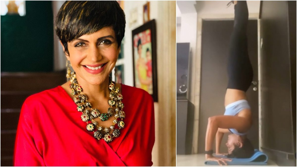 Actress Mandira Bedi took to Instagram on Wednesday to post a picture that captures her doing a headstand. The actress wrote about how such an exercise helps her beat anxiety and added that she has been able to achieve this after regular practice. "All inverted poses help keep my anxiety at bay. Be it the headstand (which I needed today after a long time) or the 10 wall assisted handstands I practice every day. Karam karo.. phal ki chinta mat karo. Bas chinta door hi rakho #stayhome #staysafe #stayactive," she wrote.