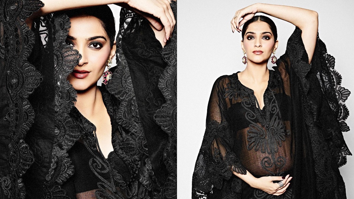 Bollywood actress Sonam Kapoor has finally shared a glimpse of her baby bump in style. The actress shared a motley of pictures, where she is seen wearing a black see-through embroidered kaftan. In one image, she is seen lovingly holding her blooming baby bump with one hand and placing the other on her head. The tagged hubby Anand Ahuja, mom Sunita Kapoor, and sister Rhea Kapoor.