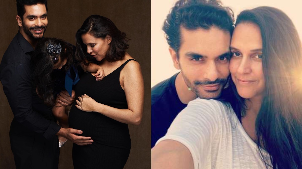 Neha Dhupia and Angad Bedi will soon be welcoming their second child. Taking to social media, the couple announced their second pregnancy. Neha, who is already a mother to three-year-old Mehr shared a beautiful family photo, expressing her joy. The picture shows Neha and Angad caressing her baby bump as the actor hold daughter Mehr in his arm. Neha wrote, "Took us 2 days to come with a caption….The best one we could think of was … Thank you, God."