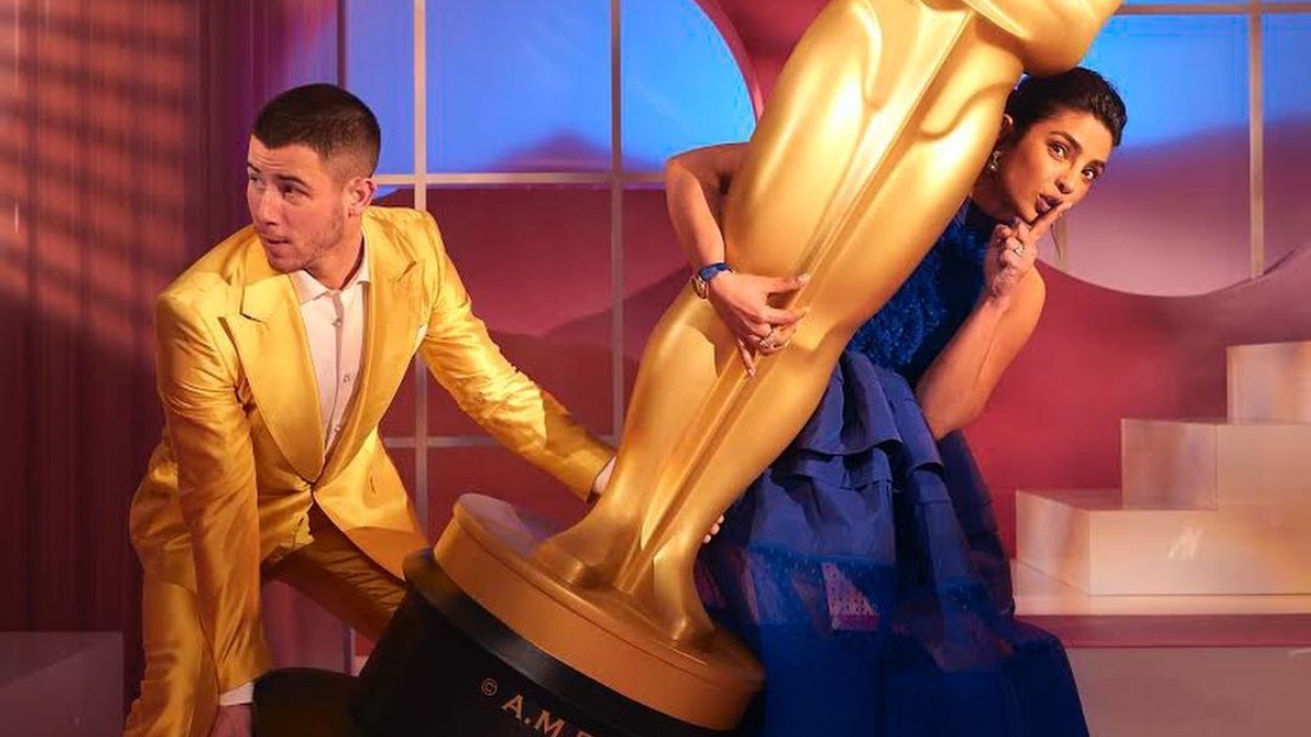Priyanka Chopra and Nick Jonas put a graceful show as they announced Oscars nominations 2021 on Monday. While the power couple maintained their poise and were elegant hosts of the virtual event, they did had a little fun behind the scenes. In a set of new pictures shared by Priyanka and Nick on Instagram, the duo can be seen having fun with a giant Oscar trophy. In the hilarious picture, the couple can be seen stealing the "Oscars". While Priyanka strikes a 'shush' pose placing a finger on her lips, Nick is spotted looking carefully behind him to spot any onlookers. "One way or the other...Congratulations to all the nominees. And thank you @theacademy for the opportunity. @gregwilliamsphotography you fit right into our manic Monday. Thank you for the pictures," Priyanka captioned the post.