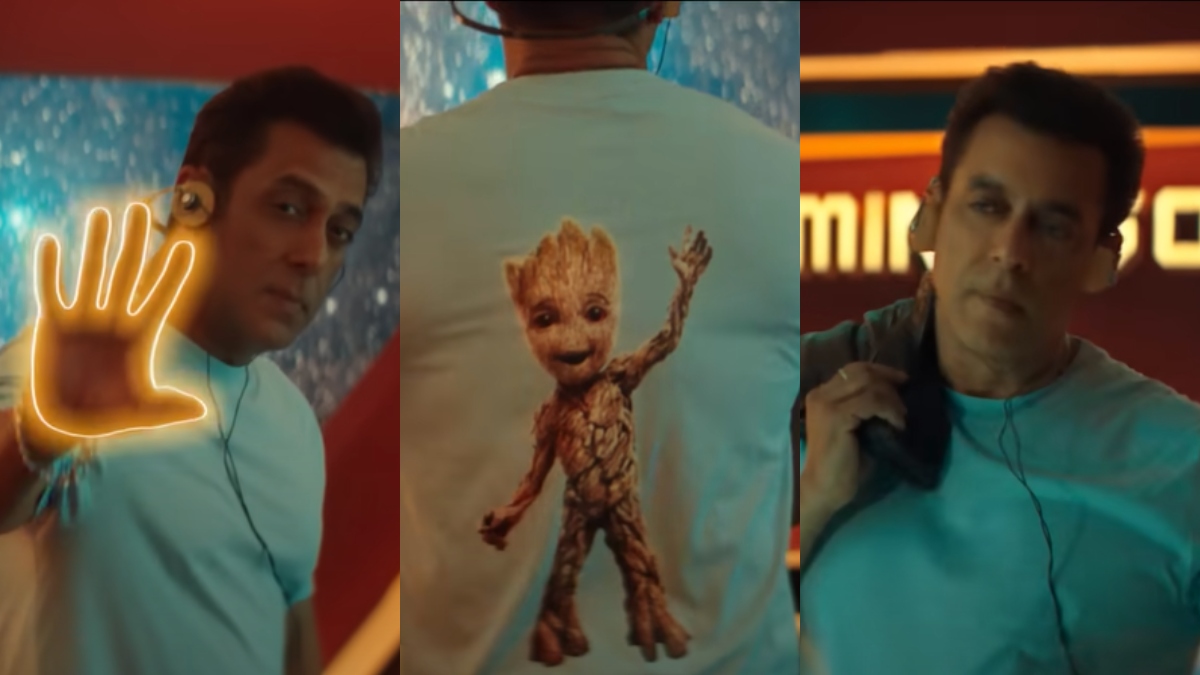 On Tuesday, MCU India shared a humorous video on Instagram starring Salman Khan. In the video, the superstar can be seen watching Groot on his phone before leaving for a press conference in his vanity van. The actor is known for his ability to convey profound thoughts with few words, similar to Groot who has won over the hearts of people worldwide with his minimal dialogue. The video showcases Salman's clever spin on his daily film promotion routine, but with a touch of Groot's character. The clip concludes with Salman Khan displaying an image of Groot on his back.