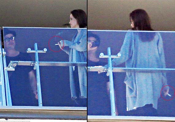 Sydney: Actress Angelina Jolie was spotted smoking a cigarette on a hotel balcony here reportedly after she and her husband Brad Pitt engaged in a heated argument.