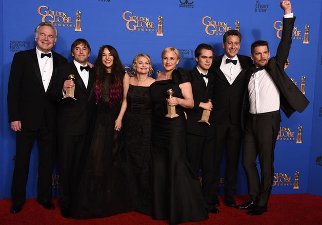 Linklater, 54, won the best director trophy while Patricia Arquette, 46, bagged the best supporting actress gong for her portrayal of a divorced mother struggling to raise two kids.