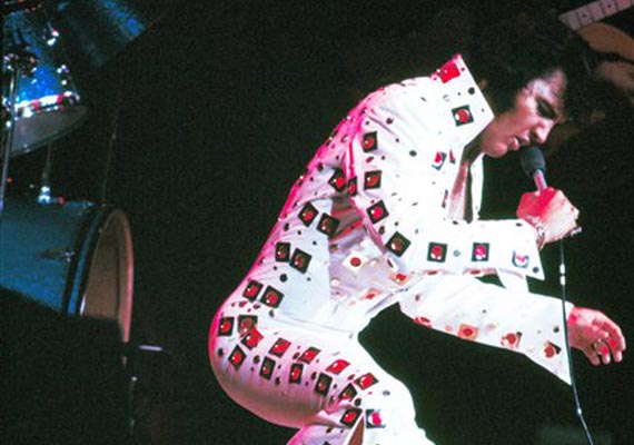 New York: A sweat-stained jumpsuit worn by Elvis Presley while performing in Las Vegas is going up for auction.