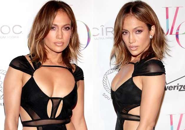 Lopez proudly showed off her curvy figure in a black cutout dress with an open back and sheer panelling, as she entered the party hand-in-hand with her on-off dancer boyfriend, Casper Smart.