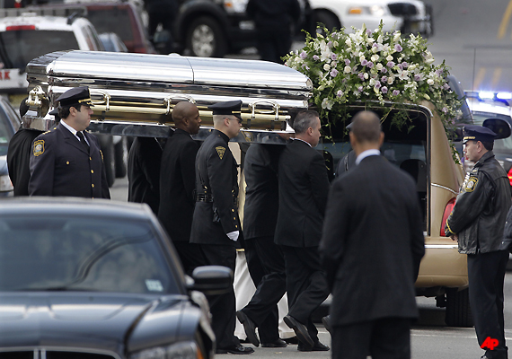 It was the most searing scene on a day with mixed moods as family, friends and A-list celebrities—sometimes one and the same—came to the humble New Hope Baptist church to remember one of music's legends, but also a New Jersey hometown girl.