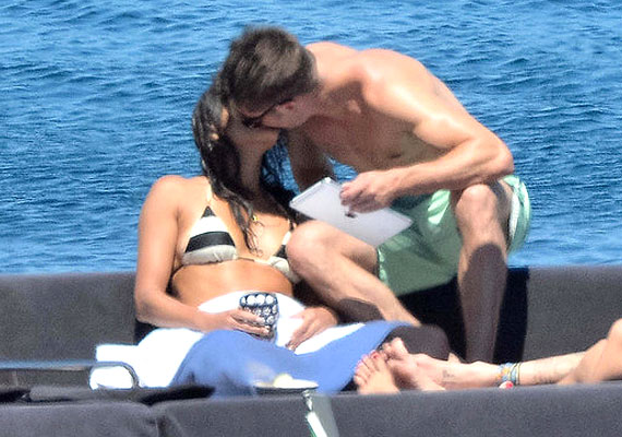 Lounging on the deck, Zac was caught leaning in and passionately kissing Michelle, who looked sexy in a black and white bikini.