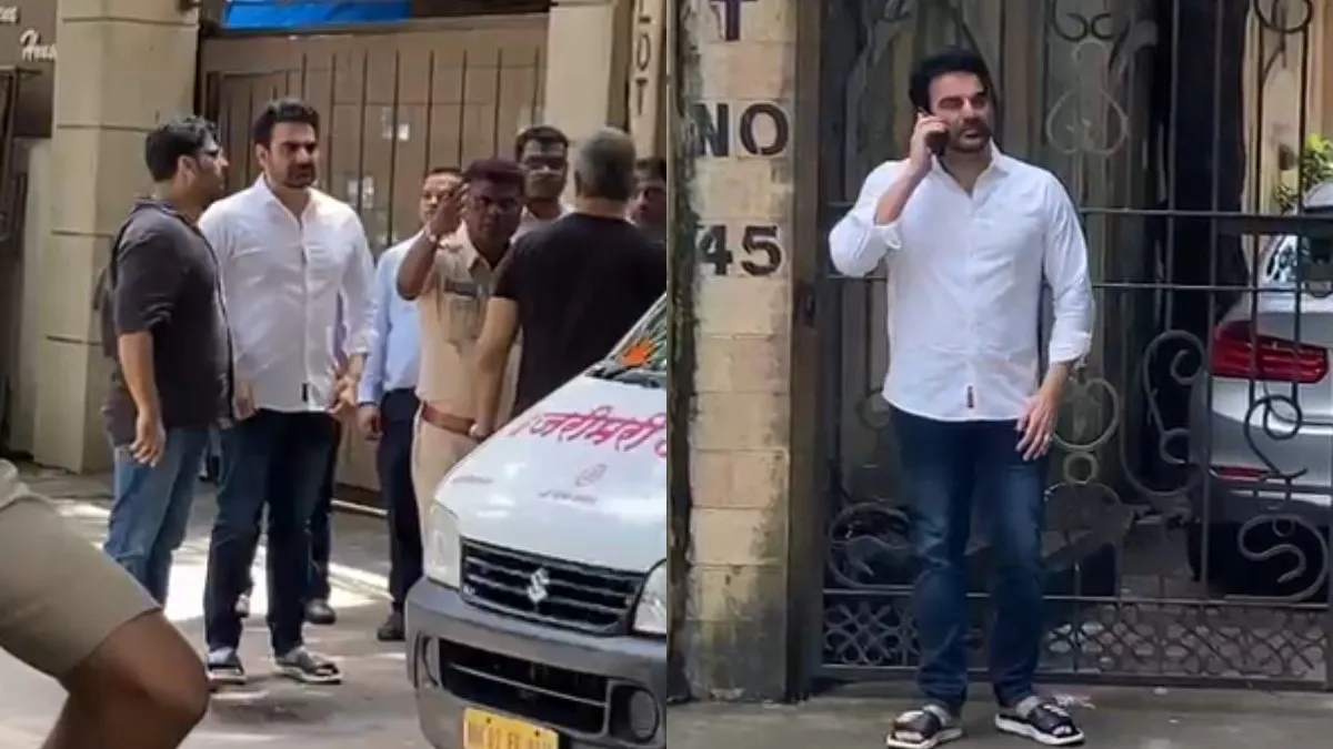 Malaika Arora's step-father Anil Mehta's death by suicide came as a shock in the film industry on Wednesday morning. As per India TV's Rajesh Kumar, Malaika's step-father jumped off from the sixth floor of a building in Mumbai. The actress was not in the town when the incident occurred, as she was in Pune. However, she has left town and is headed to Mumbai. Now, a video of the actress' ex-husband Arbaaz Khan arriving at her residence has surfaced. In the video, Arbaaz can be seen talking to someone on the phone. He also avoided paparazzi and went straight inside the residence, Ayesha Manor.