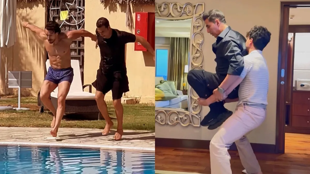 Not only this, both the actors have been recently sharing videos where they can be seen pranking with each other. Last week, Tiger posted a video of their swimming pool race, wherein he cheated to win against 'Bade Miyan'. Now, Akshay Kumar has come up with a video in which the duo is seen playing a game where one of them jumps behind without looking back and the other one catches in the mid-air, without dropping.