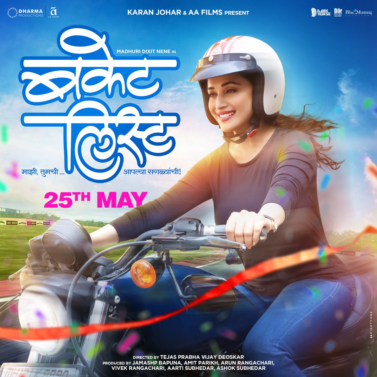Trade analyst, Taran Adarsh also tweeted the poster and wrote, “Karan Johar and AA Films to present Marathi film… Madhuri Dixit-Nene makes her Marathi film debut with #BucketList… Directed by Tejas Prabha Vijay Deoskar… 25 May 2018 release.”