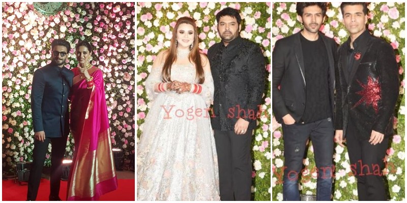 Deepika Padukone, Ranveer Singh, Vicky Kaushal, Guru Randhawa, Loveyatri actress Warina Hussain posed for the cameras as they arrived for the reception.