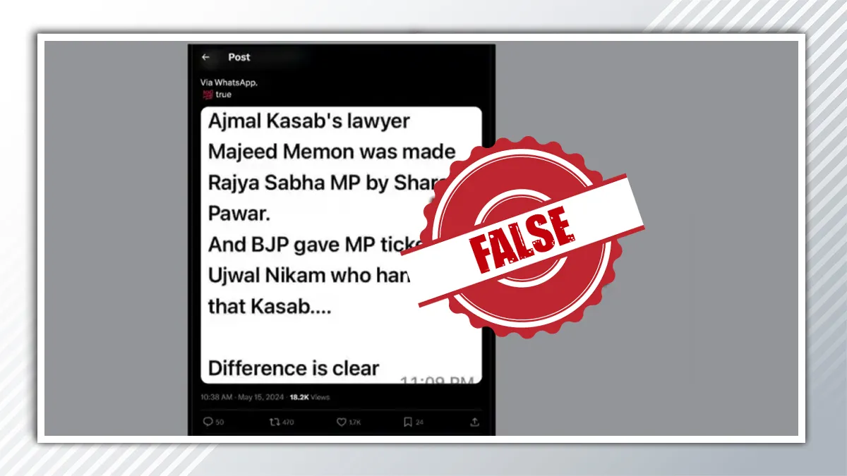 However, the fact check by Logically Facts found that the social media posts were false. There was no evidence to support the claim that he was associated with the trial of the terrorist. Nikam was a government counsel during Kasab's trial and joined the BJP earlier this year.