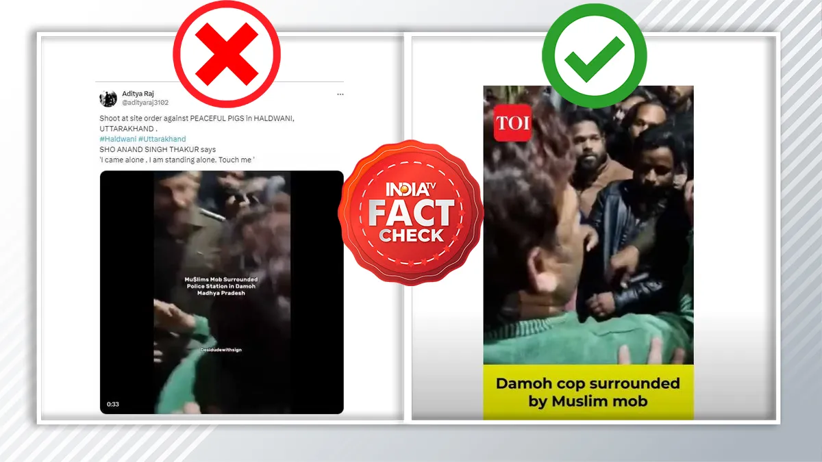 A video circulating on social media, depicting a confrontation between a mob and a police officer, has been falsely attributed to Haldwani, Uttarakhand. The misleading content, claiming to showcase an incident in Uttarakhand, actually originated from Damoh district in Madhya Pradesh. The footage captured a confrontation between a mob and Police Officer Anand Singh on February 3, 2024. The misleading dissemination of the video coincided with recent communal tensions in Uttarakhand's Haldwani region, stemming from a contentious anti-encroachment operation targeting an 'unauthorised' madrasa and mosque, resulting in tragic fatalities and injuries.