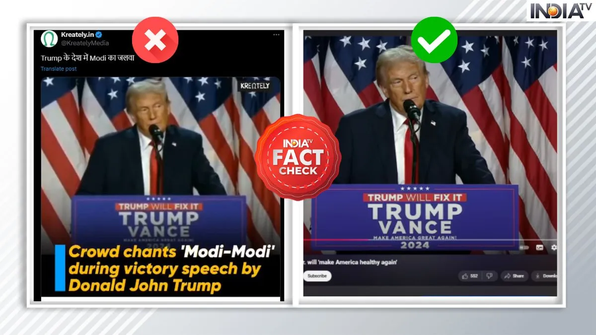 India TV Fact Check: A video clip of US President-elect Donald Trump's address after his victory in the presidential election is widely circulating on social media with a claim that the crowd chanted "Modi-Modi" during Trump's speech. However, a fact check done by India TV has confirmed that this claim is false.