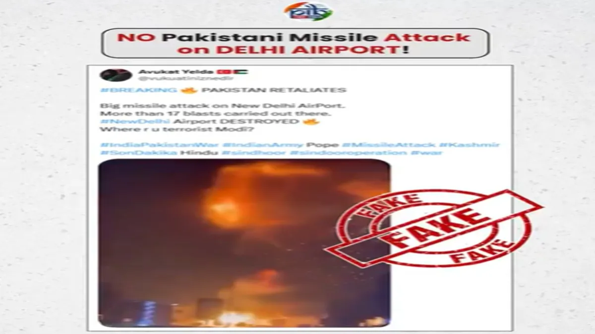 "Attention: False Claim Circulating Online! Missile Attack on Delhi Airport? An old video is being falsely shared as footage of a missile strike on New Delhi Airport," PIB said in an X post.