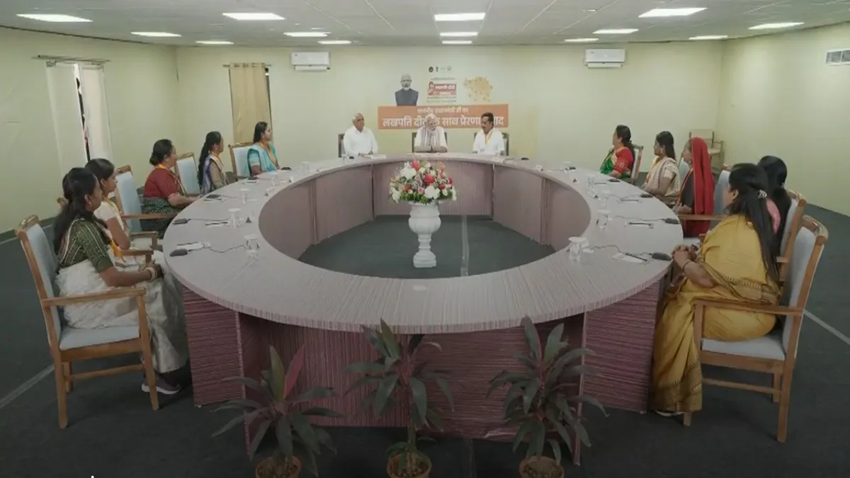 PM Modi engaged in a boardroom style interaction with 'Lakhpati Didis' at Navsari today, akin to the way he interacts with CEOs of companies. With a notepad and pencil in hand, the PM was focussed on noting the key points from the discussion.