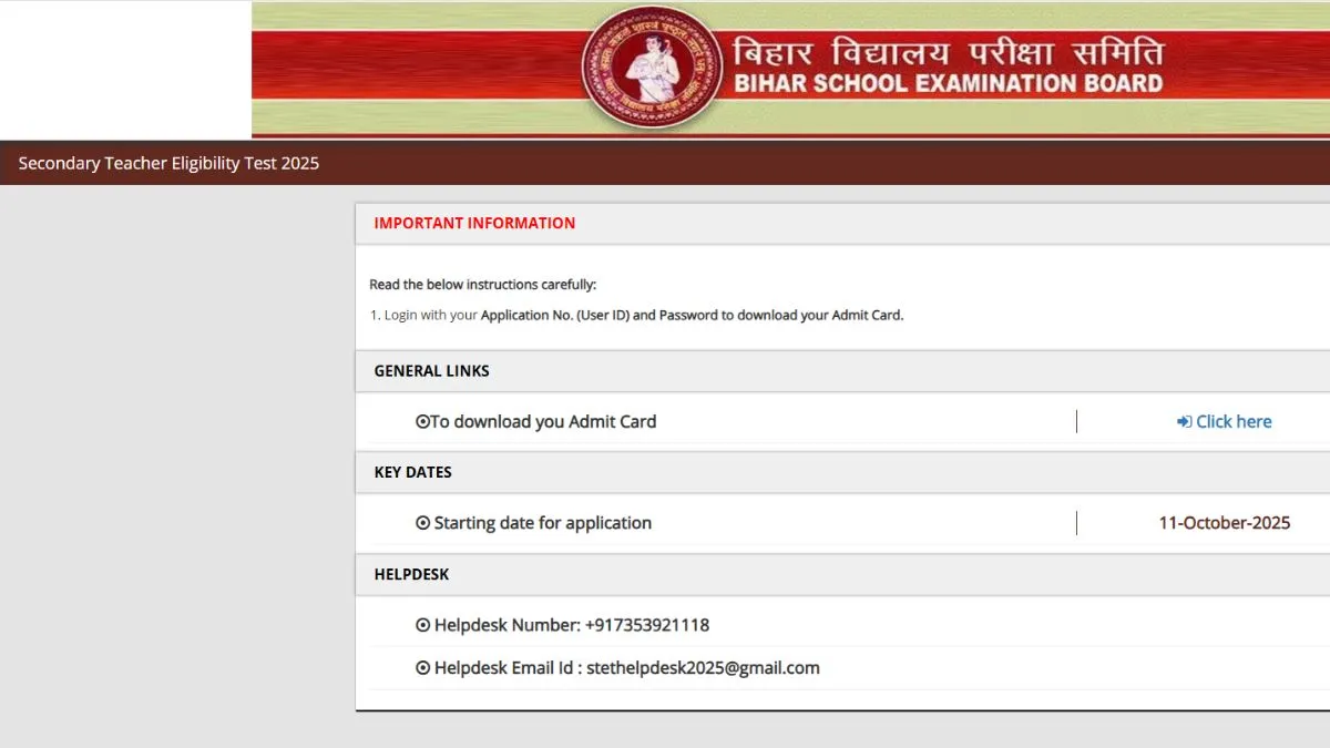 The Bihar School Examination Board, BSEB STET result 2025 will be announced soon on the official website- bsebstet.com, the candidates can check and download scorecard at bsebstet.com. BSEB STET exam 2025 was held from October 14 to 31, 2025.