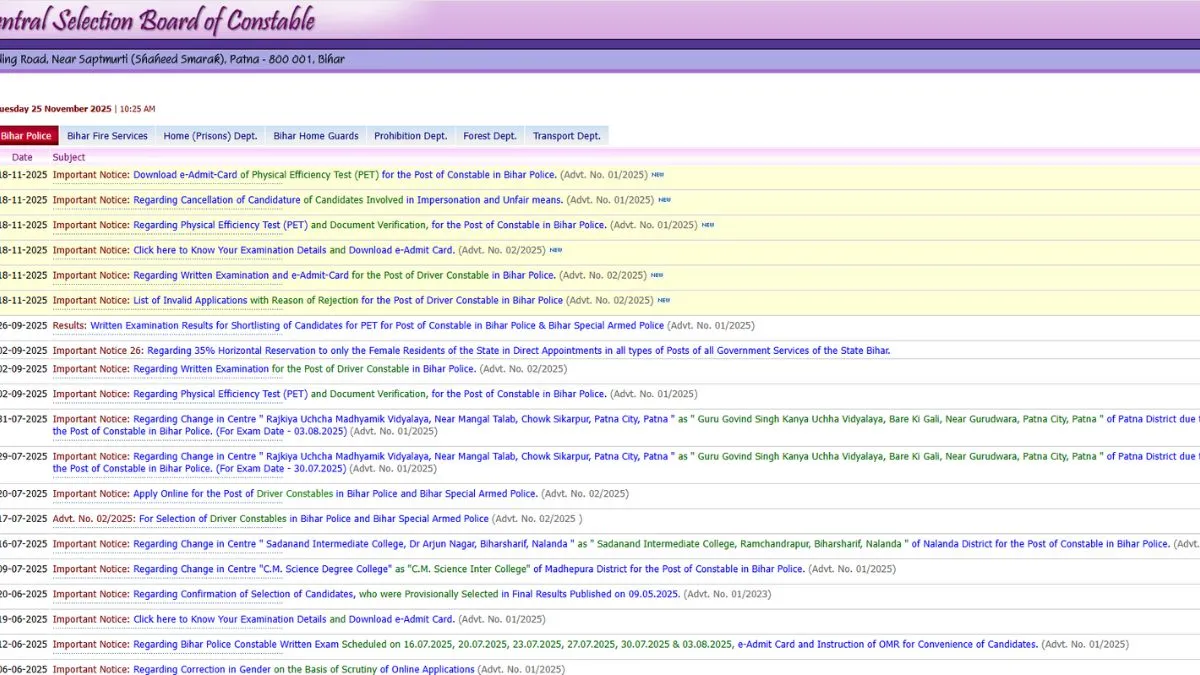 CSBC Bihar Police Constable PET hall ticket 2025: How to download at csbc.bihar.gov.in
