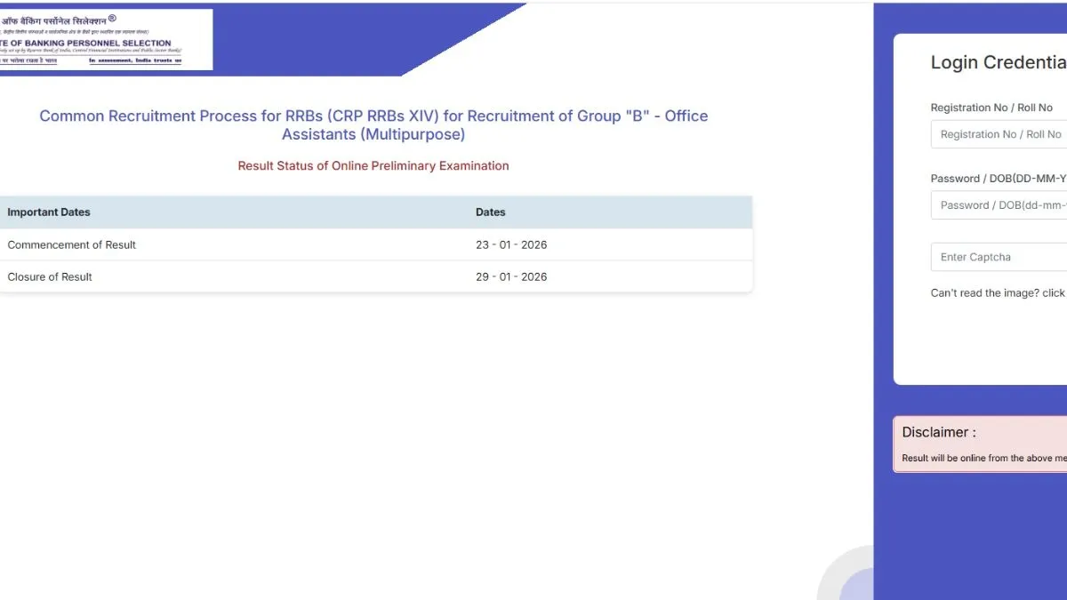 The Institute of Banking Personnel Selection (IBPS) has announced the Regional Rural Banks (RRB) Clerk (Office Assistant-Multipurpose) Prelims Result 2025. The candidates who had appeared for the IBPS RRB Clerk Prelims exam can check the result on the official website- ibps.in and download scorecard PDF. IBPS RRB Clerk Prelims scorecard PDF login credentials are- registration number, password.