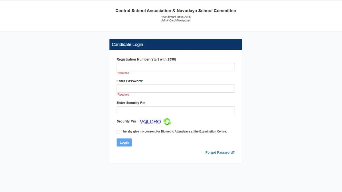 To download KVS, NVS recruitment exam hall ticket 2025, candidates need to visit the official portals- cbse.gov.in, kvsangathan.nic.in, navodaya.gov.in and click on admit card PDF link. Enter registration number and password as the login credentials. KVS, NVS recruitment exam hall ticket will appear on the screen for download, save KVS, NVS recruitment exam hall ticket PDF and take a hard copy out of it.