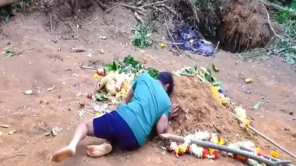 The emotional video shows BT Lakshman, father of Bhumik Lakshman, weeping uncontrollably beside his son’s grave in their native village in Hassan district. Refusing to leave, Lakshman is seen lying on the ground with his head pressed against the grave, overcome by grief.