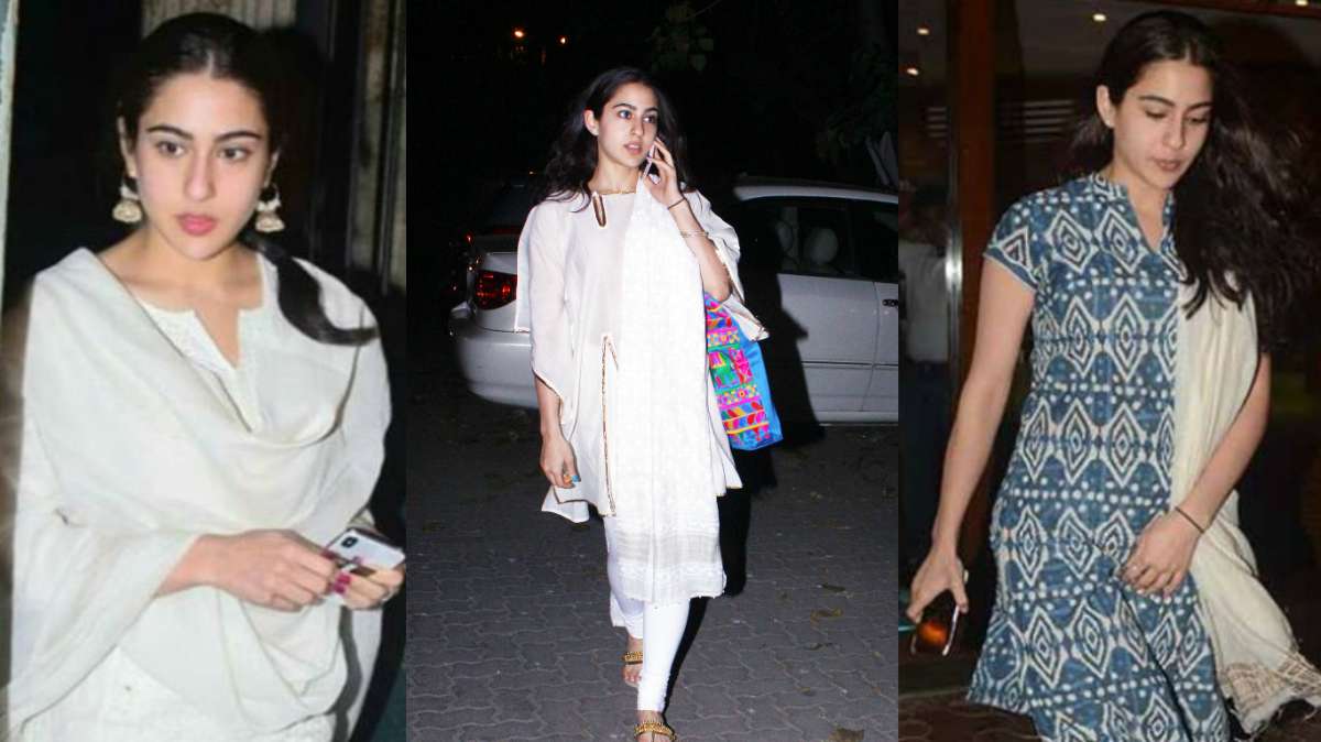 Besides white churidar, her kurtis also have white on them. Let us tell you that Sara is part of the new gen actress who don't mind repeating their outfits. Check out some of her churidar-kurta looks: