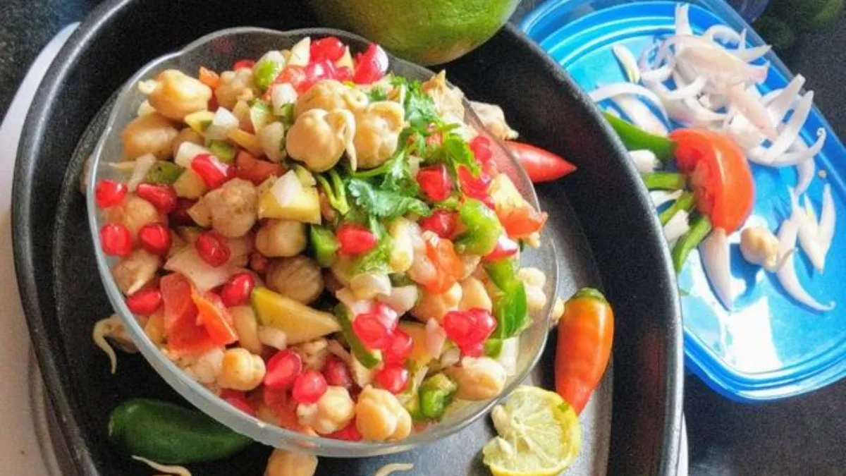 Step 3: Filter out all the water from the boiled chickpeas. Now take out the chickpeas in a bowl and add all the chopped vegetables to it. Add black salt, chaat masala and lemon on top. Tasty chickpea sprouts are ready.
