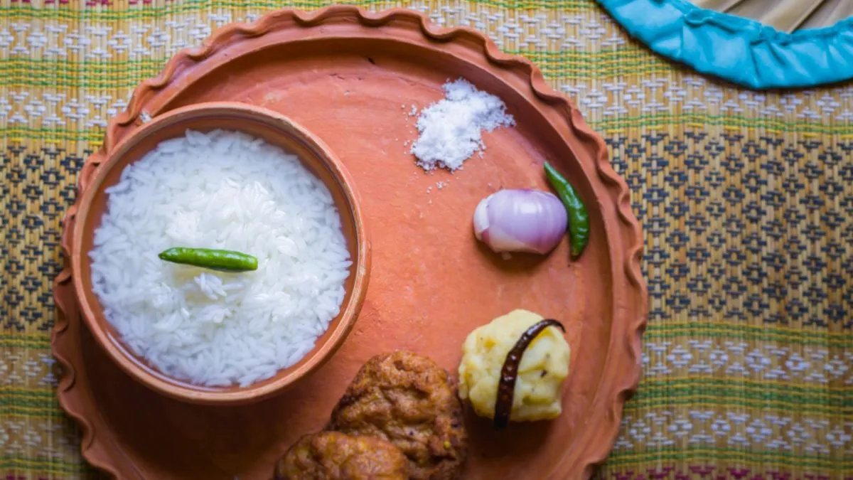 In Assam, fermented rice called "chokha bhaat" is eaten with salt and mustard oil. It helps beat the summer heat and helps in digestion.