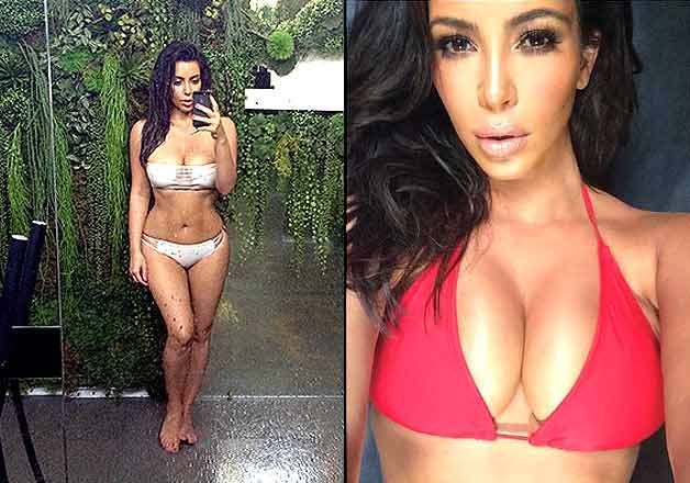 Los Angeles: Reality TV star Kim Kardashian has flaunted her slim and toned figure in a previously unseen photograph to be included in her forthcoming book "Selfish".The star showed off her long legs, flat stomach and ample cleavage in the photograph as she posed in front of some plants, reports mirror.co.uk.