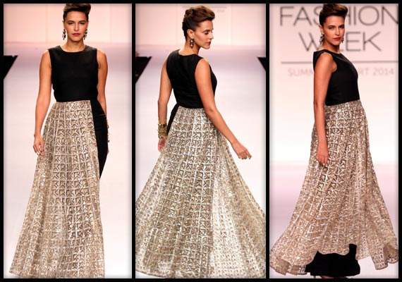 Neha turned showstopper for designer Payal Singhal at Lakme Fashion Week 2014 Spring/Summer collection held in Mumbai.