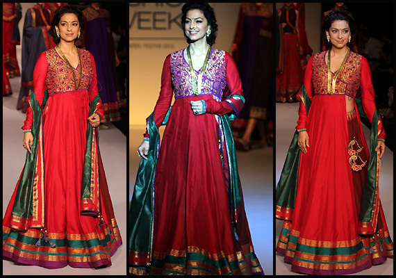 Mumbai: Punjabi 'kudi' Juhi Chawla flaunted the Marathi 'Mulgi' look Monday at the Lakme Fashion Week (LFW) Winter-Festive 2013 runway here.