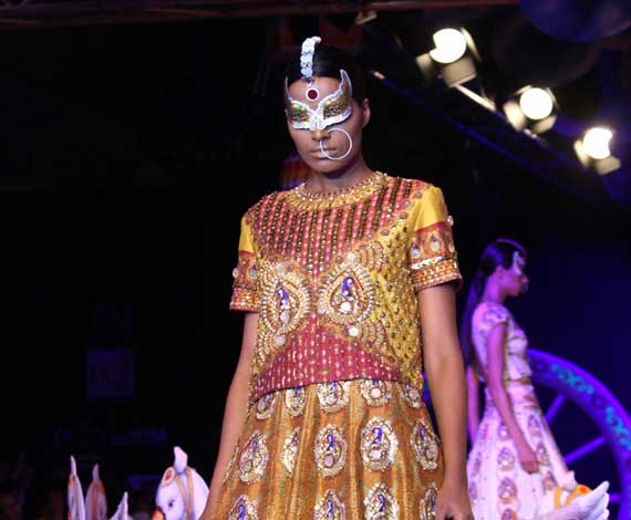 New Delhi, Aug 4: Revisiting the past helped Manish Arora find his inspiration for a new bridal collection, which was high on Indian street art, digital prints, and gold colour and enlivened the stage at the PCJ Delhi Couture Week 2013.