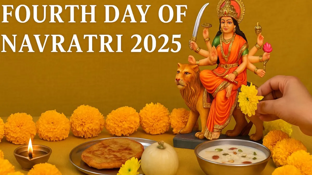 The 4th day of Navratri 2025 (September 25, Thursday) is dedicated to Maa Kushmanda, the goddess of energy and creation. Worshipping her with yellow colour, bhog of malpua/kheer, white pumpkin prasadam, and chanting her mantras ensures health, wealth, and positivity.