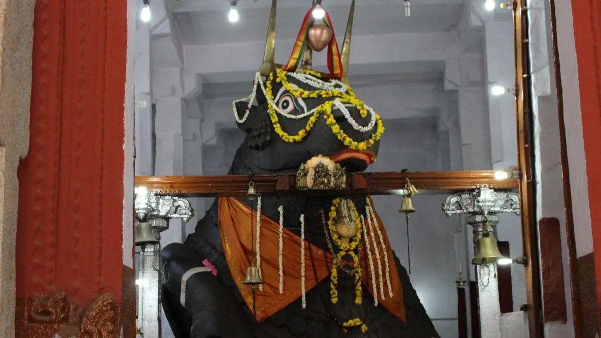 The most renowned centrepiece of the temple is a colossal monolithic Nandi, sculpted from a single granite boulder and located within the core of the temple. The bull itself stands roughly 4.6 meters tall and about 6.1 meters (~20 feet) long, making it one of the largest Nandi statues on the planet.